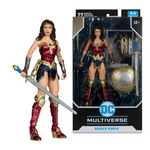 The McFarlane DC Multiverse Batman v Superman: Dawn of Justice Wonder Woman 7-Inch Action Figure features ultra articulation with up to 22 moving parts for a full range of posing. Wonder Woman comes with a sword, shield, Lasso of Truth, and figure display base. Also included is a collectible card with artwork on the front, and a character biography on the back. Ages 12 and up.