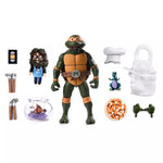 Based on the classic 1980s Teenage Mutant Ninja Turtles cartoon series! The party dude Michelangelo is getting the “Ultimate” treatment with this 7-inch scale action figure loaded with accessories. His included chef's hat and soft goods pizza apron pair perfectly with his granola & licorice pizza and other episode-specific accessories! Comes in all-new Pizza Club VHS style collectible packaging.